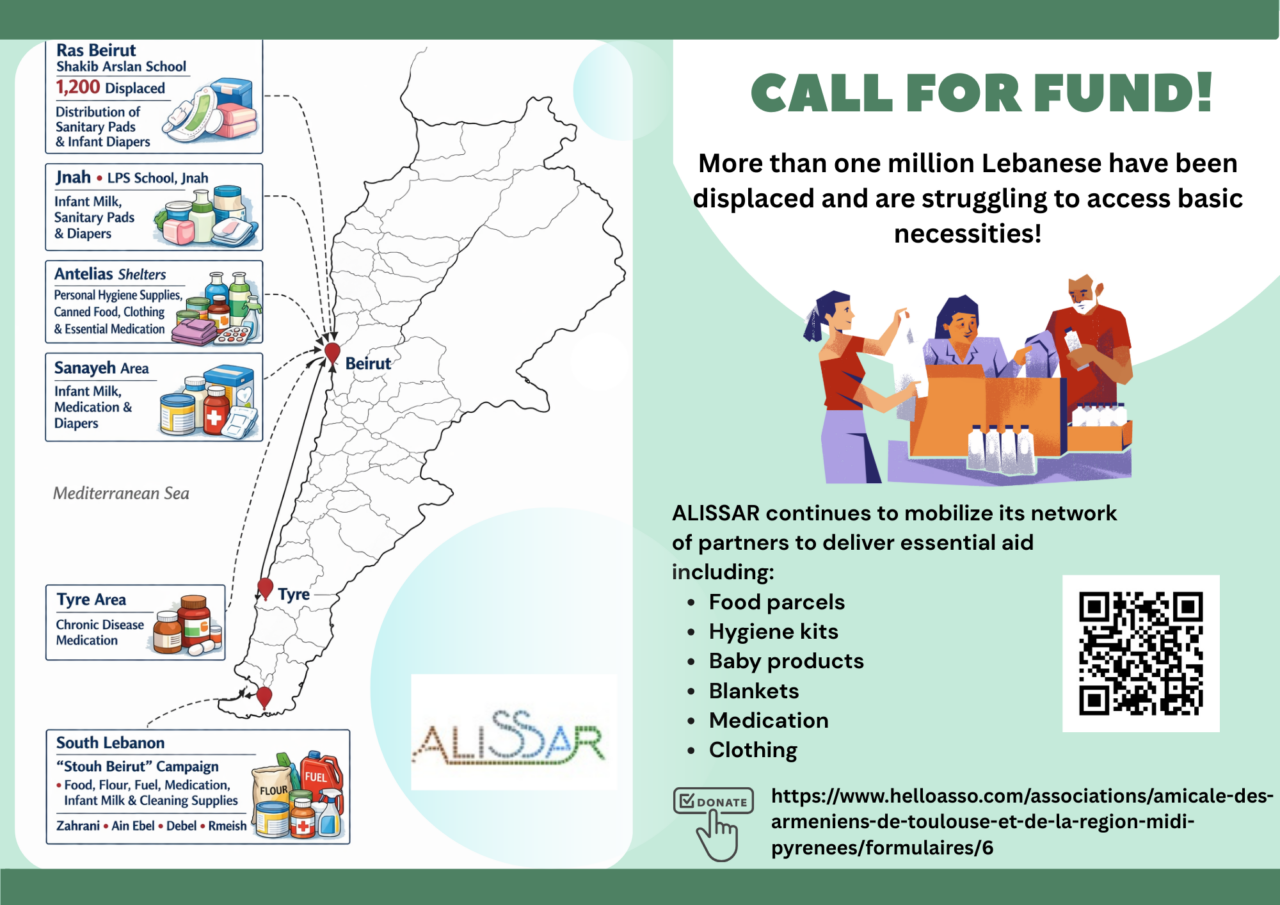 Afin de faire face à cette crise grandissante, ALISSAR continue de mobiliser activement son réseau de partenaires et de bénévoles pour fournir une aide essentielle : colis alimentaires, kits d’hygiène, produits pour bébés, couvertures, médicaments, vêtements et autres fournitures d’urgence.