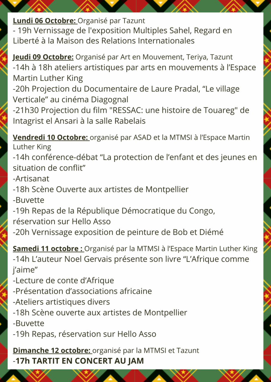 Vendredi 10 Octobre: organisé par ASAD et la MTMSI à l’Espace Martin Luther King