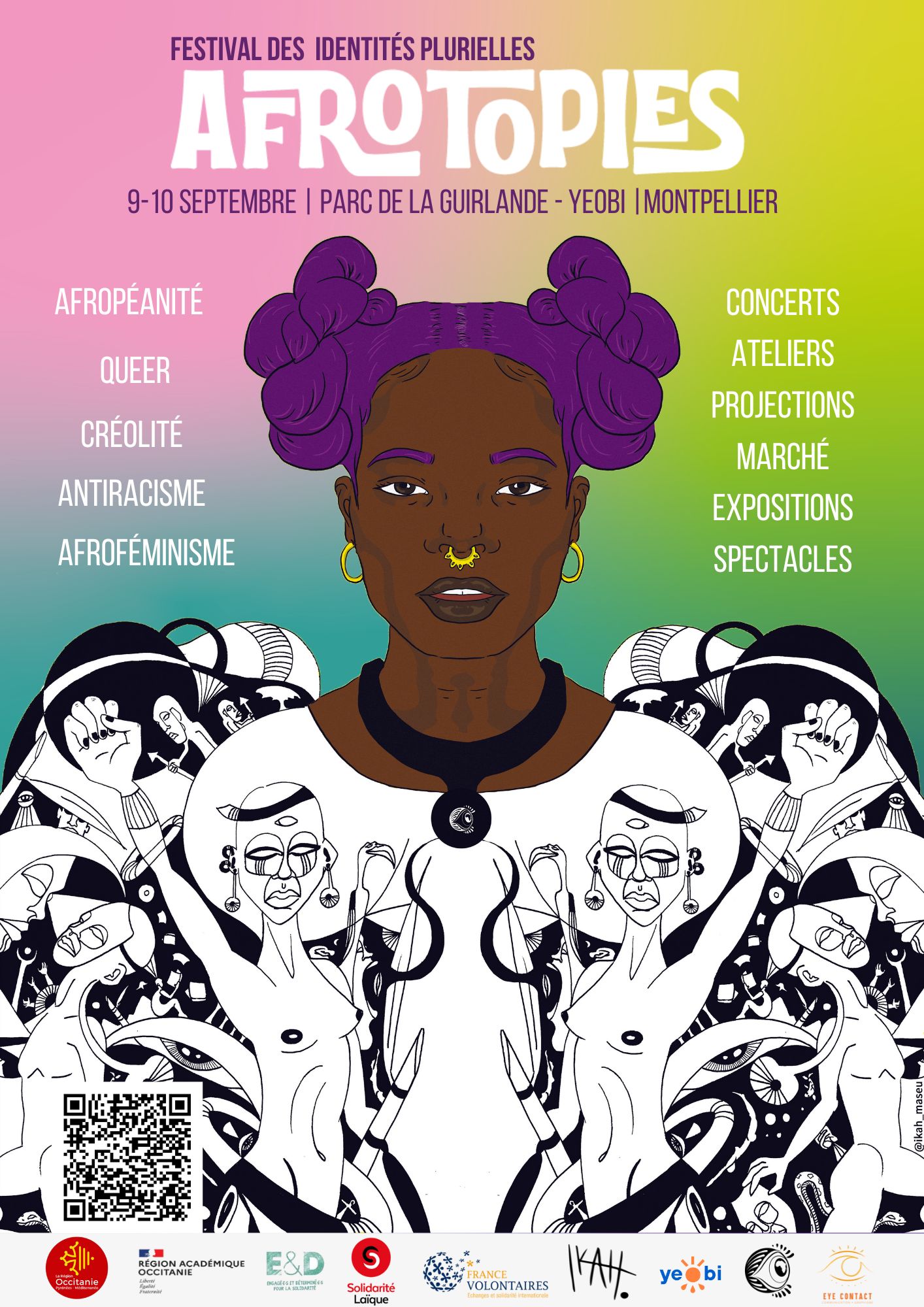 Les pieds en sol européen, pourtant enraciné.e.s au-delà de la Méditerranée, nous souhaitons visibiliser nos identités, faire entendre nos voix, à travers l'espace si particulier qu'est le festival. Un lieu de célébration, de découverte et de réflexion. Un lieu utopique en soi, fait par et pour des afrodescendant.e.s, pour les personnes racisées plus largement et toustes celleux qui se reconnaissent dans une vision polyphonique du vivre ensemble qui prend en compte les rapports de domination structurelle de notre société.