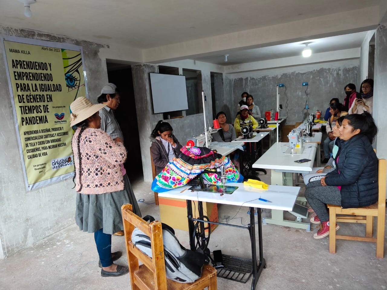 Dans le but de participer à l'amélioration des conditions de vie des familles les plus vulnérables, particulièrement des jeunes femmes et des mères de famille et sans emploi, l'association Huchuy Yachaq et la communauté de quartier Hermanos Ayar, en partenariat avec l'association Los Chicos de Cusco, a lancé en mai 2022 un programme intitulé “Apprentissage et entreprenariat pour l’égalité des sexes en temps de pandémie » un atelier de fabrication de sacs à mains artisanaux et accessoires.