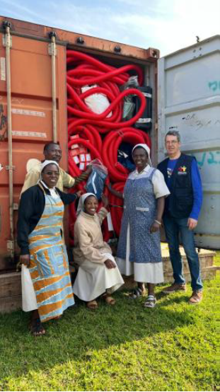Cette opération de Ruzo présente un caractère atypique, dans la mesure où nous assurons l’approvisionnement de l’intégralité du matériel, acheminé par conteneur, ainsi que la réalisation de l’ensemble des travaux. Cette solution a été retenue afin de limiter les coûts pour les sœurs. Une grande partie du matériel a été gracieusement fournie par des entreprises partenaires, tandis que la main-d’œuvre est assurée par les bénévoles de l’association.